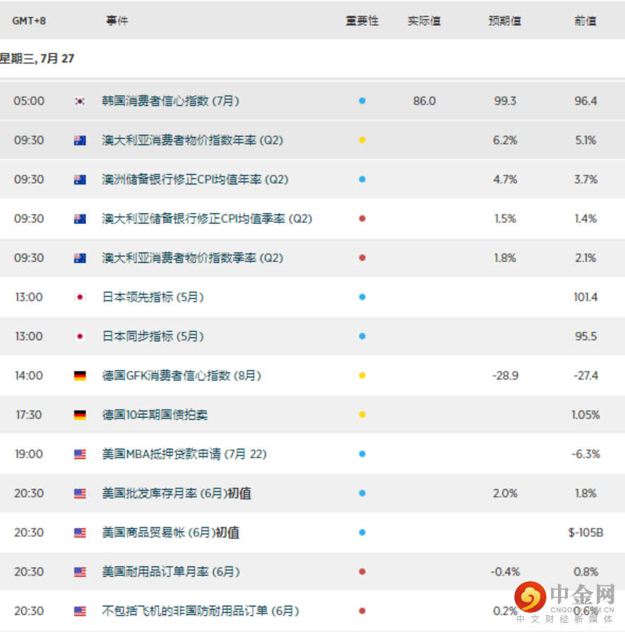 美国谘商会消费者信心跌至一年半低点,其预期指数处于2013年以来最低点,但整体仍好于创下历史低点的密歇根大学消费者信心指数。