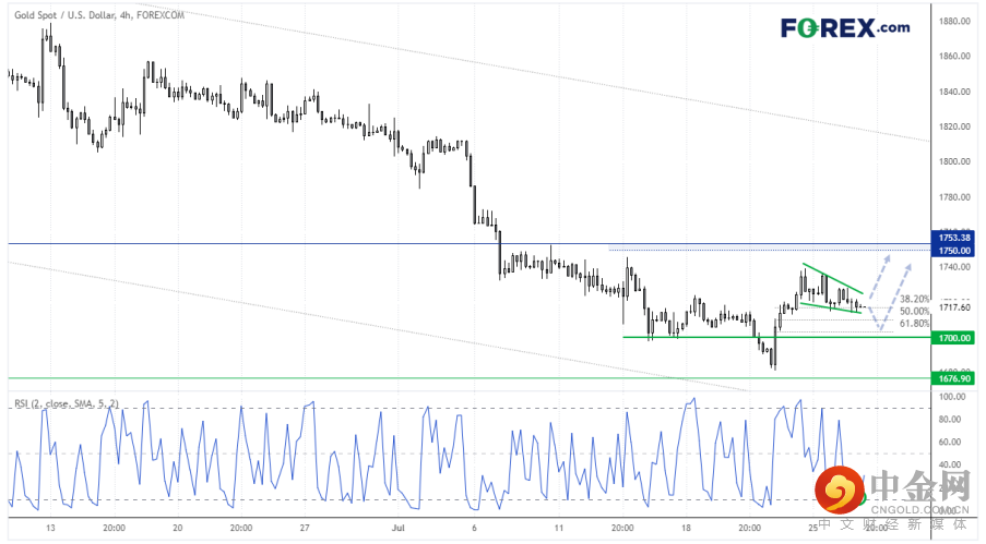 金价回到1700上方,形成了长看涨吞噬K线,目前修正,可能在构筑延续形态。守住1700关键支撑位,我们继续看涨,寻找该位之上的做多机会,第一目标1750阻力区域。