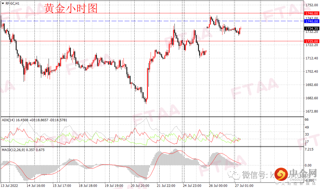 黄金期货周二窄幅震荡,最高1744.05,最低1729.65,日图收出上影十字,显示短期多空平衡。日图级别或维持震荡略偏弱。小时图看,昨日亚盘小幅冲高回落,欧美时段水平窄幅波动。28日凌晨美联储议息会议决议公布前,市场或维持谨慎交投。今早亚盘金价小幅下跌,当前回弹。操作上可平出空单,转为观望为主。或逢高在1740附近重新轻仓空,止损1746,目标1725。