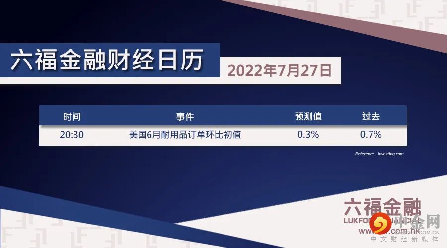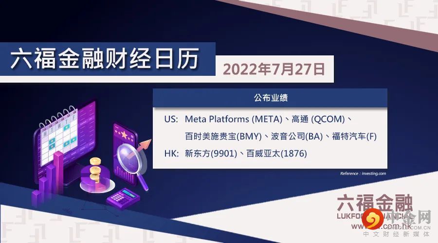 【六福金融财经日历7月27日】投资者请留意!今日将公布以下经济数据及业绩: