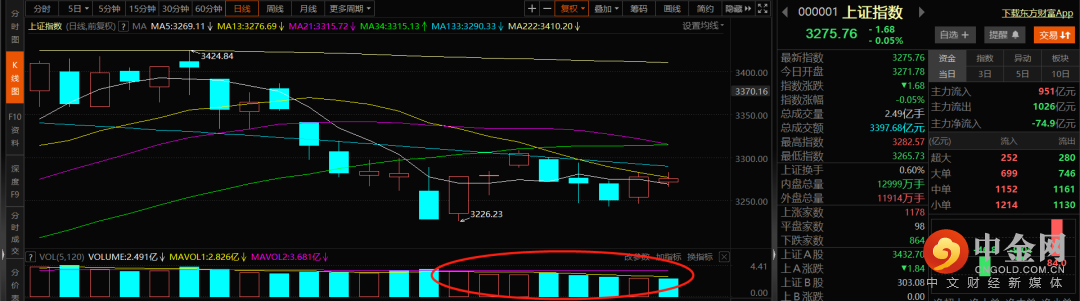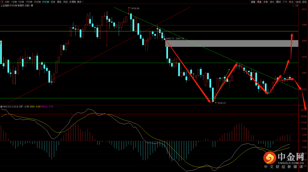 大盘跳空低开后出现横盘震荡走势,短期收缩量十字星变盘意味明显,注意观察3256点支撑跟3308点压制,如果跌破则大概率新低去试探3150到3195点平台支撑,如果突破成功则大概率会向上去试探3355到3372平台压制。