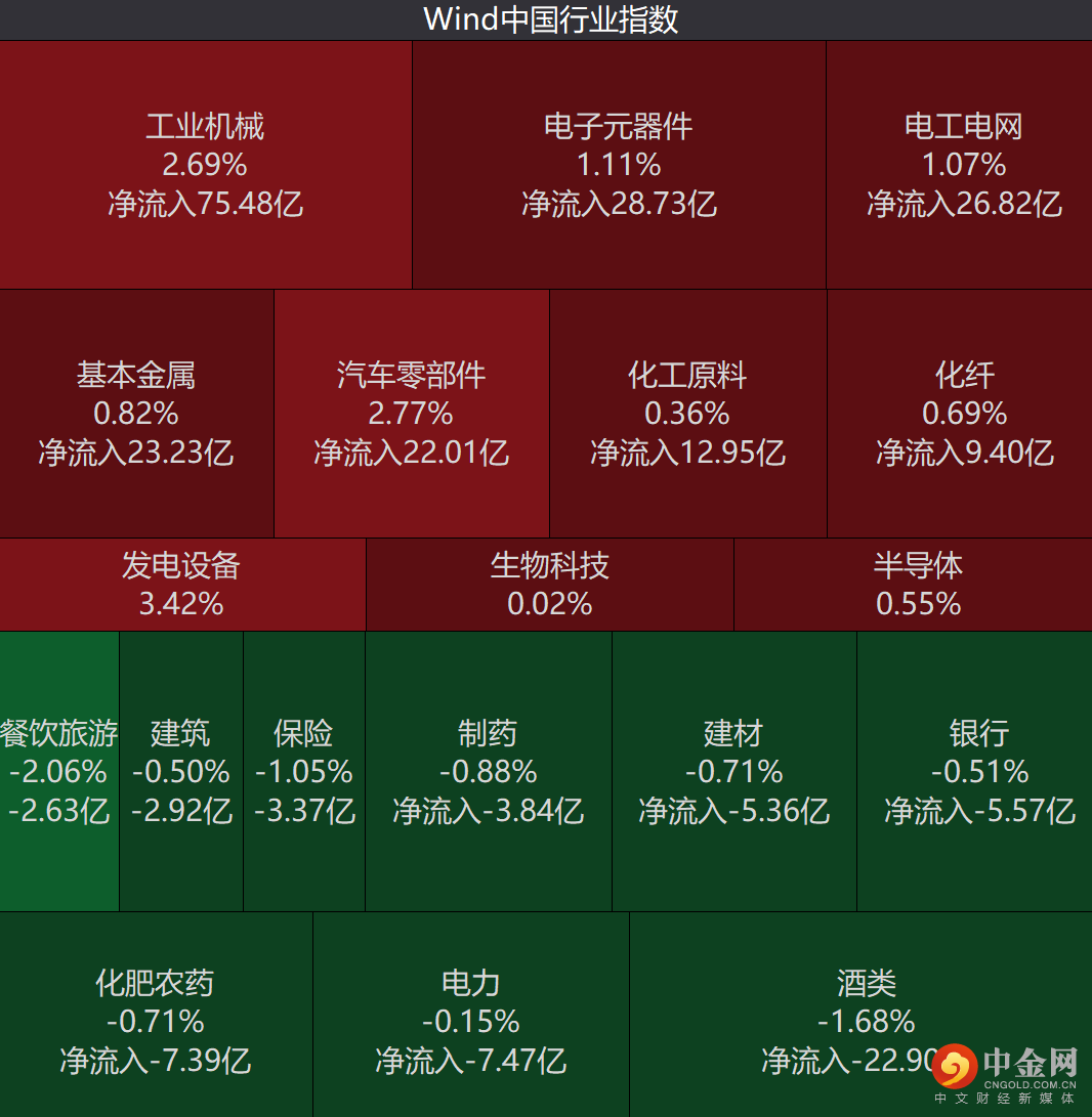 行业板块中,光伏、电机、燃气等涨幅居前,旅游、酿酒、保险等走势较弱。