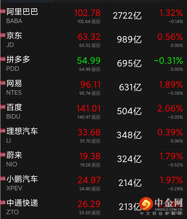 热门中概股多数上涨,即使涨幅相对较低。纳斯达克中国金龙指数涨1.7%;新东方涨超7%,百度涨超2%,阿里巴巴、网易、蔚来、小鹏汽车涨超1%。