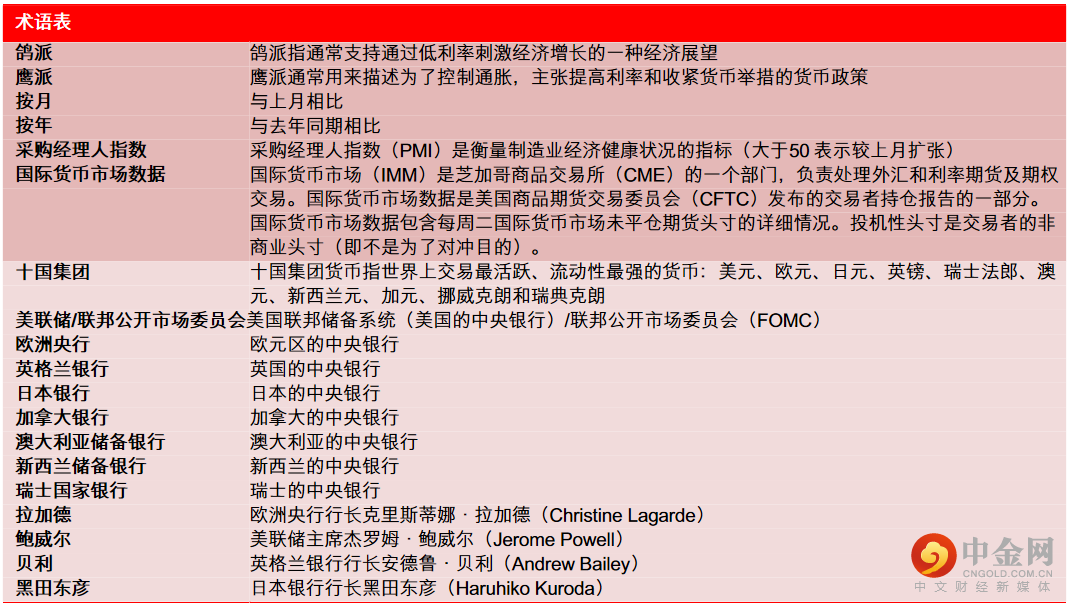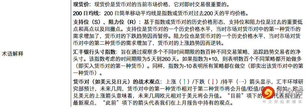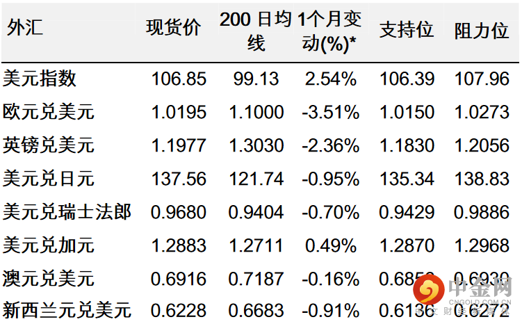 | 美元 | 在过去6个月的大部分时间里,市场一直对头寸和估值感到担忧,但美元仍逐步上涨。我们认为,推动美元突破2022年7月高点的条件仍然存在,因此美元的回调应该是暂时的。美联储的鹰派立场和全球经济增长放缓可能会支撑美元。汽油价格下跌可能会缓解部分压力,但租金通胀加剧、汽车供应端压力持续存在及紧俏的劳动力市场对服务业通胀造成压力,这一切都表明美联储可能会保持鹰派立场,进而利好美元。美国将于8月10日公布的消费价格指数报告可能为通胀前景提供更多线索。同时,货币政策收紧或给美国经济增长带来更大负担,但全球其他地区也面临同样的困扰。我们仍认为这对美元有利,特别是如果市场对其他地区经济增长的担忧加剧(例如欧洲能源供应问题等)。美元与欧元平价不可避免地导致美元指数出现一些惰性而停滞不前,但推动美元涨至目前水平的因素仍然存在。 | 美元指数^ | ↑ | ↑ |