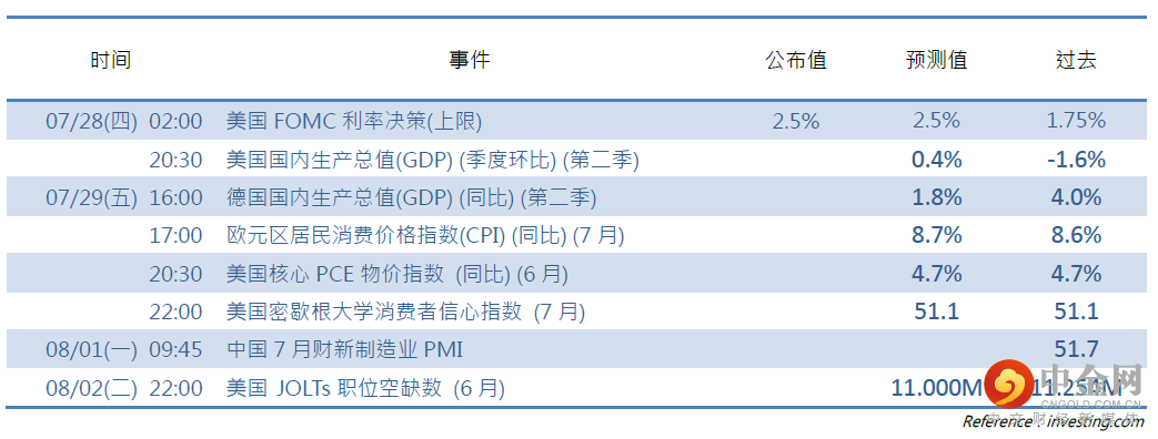 周四将发布美国二季度GDP数据,市场目前认为可以暂时避免连续两个季度环比下降,即技术性衰退的窘境。