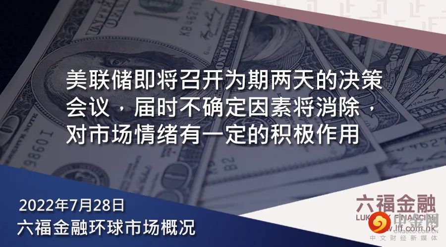 美联储如期加息75个基点,鲍威尔不排除9月再大幅加息,但谈及放慢加息节奏的可能性被视为释放鸽派信号,美股尾盘涨幅迅速扩大,标普七周来首次收高于4000点,11大板块齐涨,谷歌领涨通信股,道指涨超400点,科技止步三连跌,纳指100涨超4%创20个月最佳,Meta三季度指引不佳,盘后跌3%。