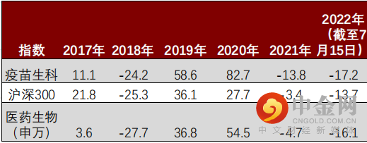 国证疫苗与生物科技指数(980015.CNI)基日为2002-12-31,截至2022年7月15日,收盘价为11922.65,指数累计涨幅超11倍!近五年年化收益超12%,超过医药生物(申万)指数和沪深300指数。