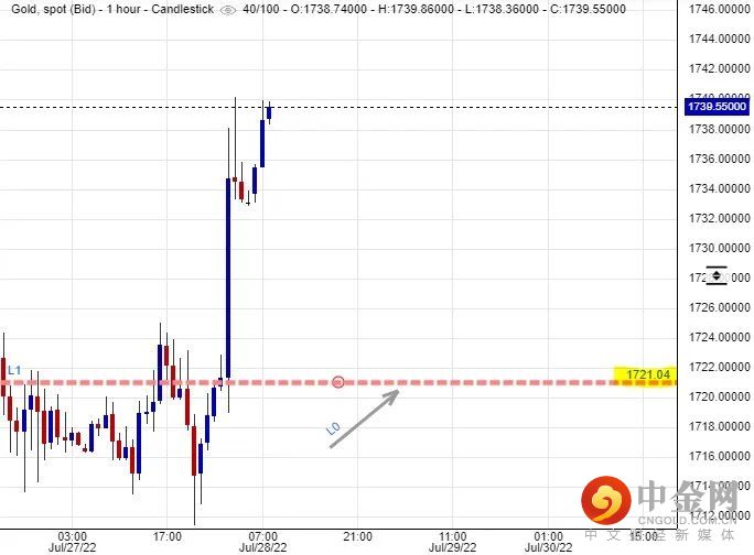 可以部署在$1,721美元左右建立好仓盘,短线看高金价一线至$1,750美元水平后止赚,止损在$1,713美元。
