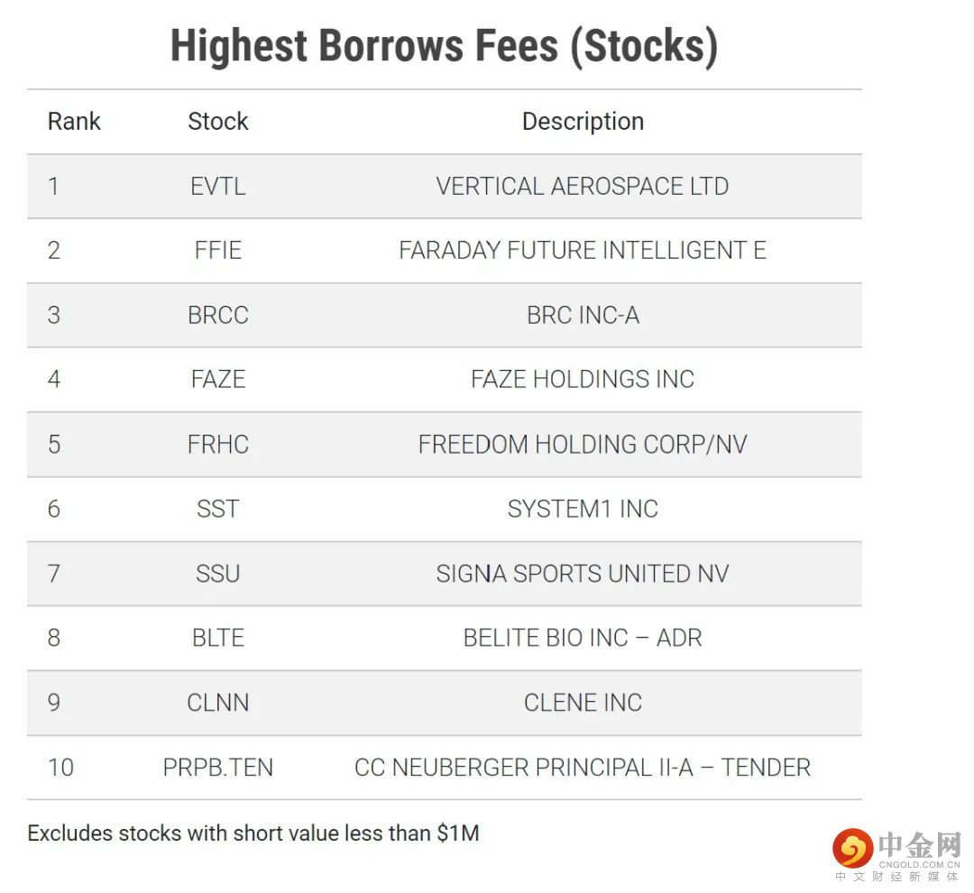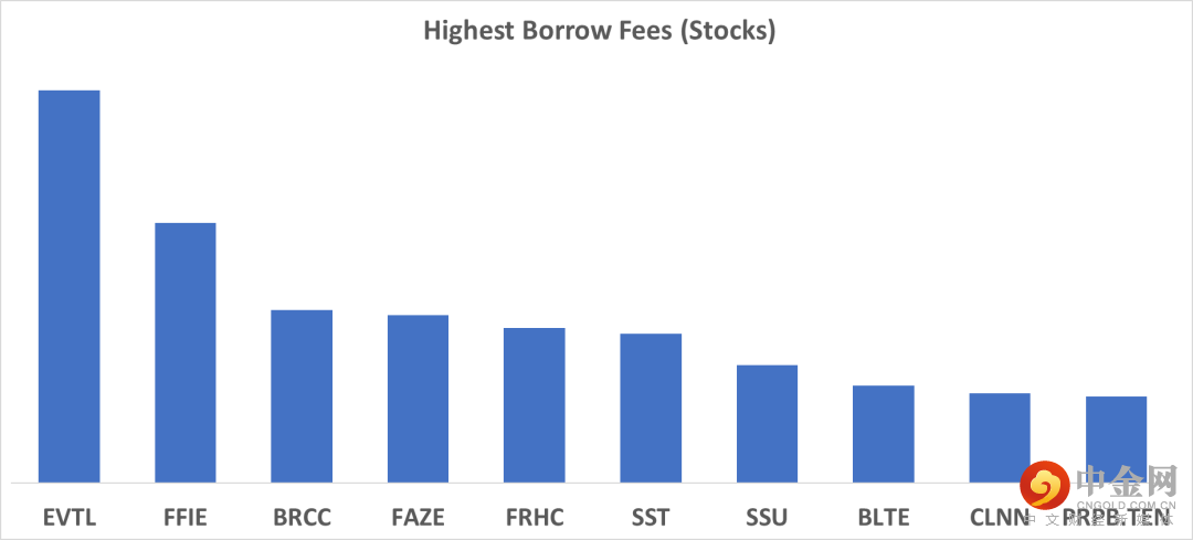 下表中列出的是2022/7/21具有最高借入费用的10个证券。