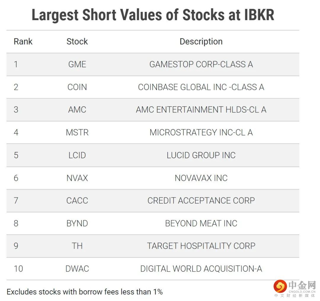 下表中列出的是2022/7/21具有最大做空值的10个证券。