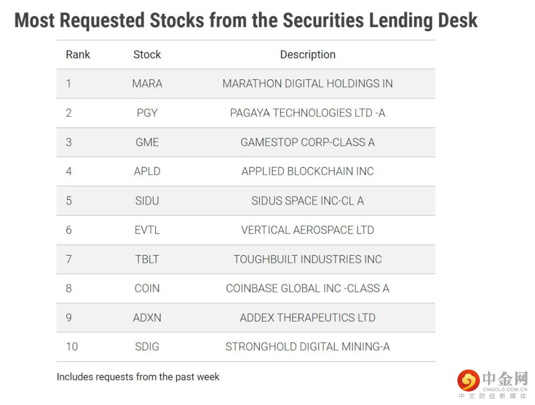 下表中列出的是2022/7/21借入需求最高的10个证券。