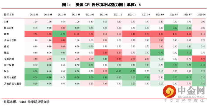 通胀屡超预期,并续创新高是导致美联储连续两次加息75bp的核心因素。美国6月CPI同比上涨9.1%,预期8.8%,前值8.6%,续创1981年12月以来新高。能源价格的持续攀升,且对CPI能源项的滞后传导是造成CPI迟迟未见顶并持续超预期的主要原因,6月能源项环比上涨7.5%,为上涨幅度最大的分项,其他分项均有不同程度的提速,反映能源价格大幅走高已渗透各个领域,居高不下的通胀为美联储施加了更强的紧缩压力。
