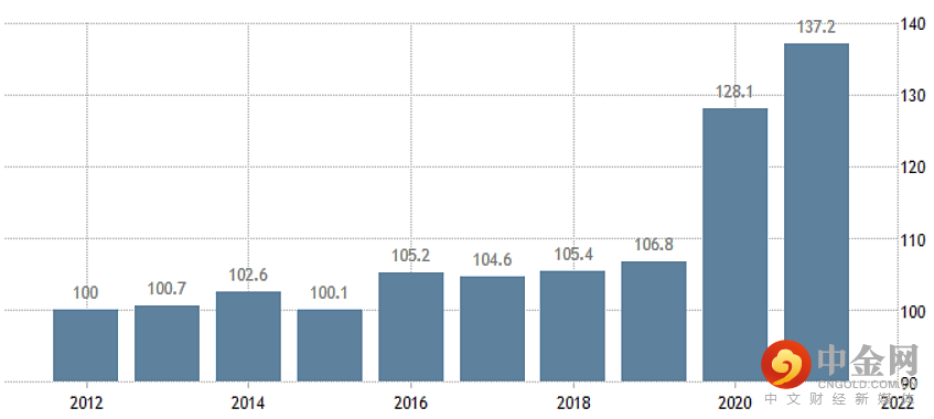 图3:美国债务占GDP的比重 %