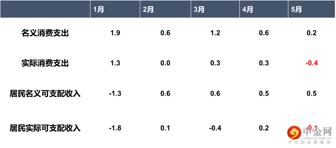 表1:美国居民消费支出变化 %