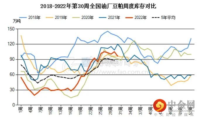 4.美国农业部发布的全国作物进展周报显示,美国大豆优良率比一周前减少了2个百分点,超出了市场预期的降幅。在占到全国大豆播种面积96%的18个州,截至7月24日(周日),美国大豆扬花率为64%,上周48%,去年同期74%,五年均值69%。大豆结荚率为26%,上周14%,去年同期39%,五年均值34%。大豆优良率为59%,上周61%,去年同期58%。分析师平均预期优良率为60%。