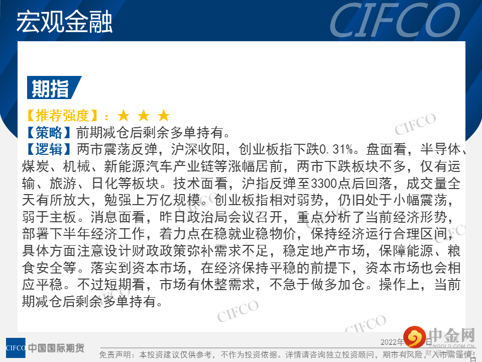 中期早知道 | 商品持续反弹 轻仓谨慎操作