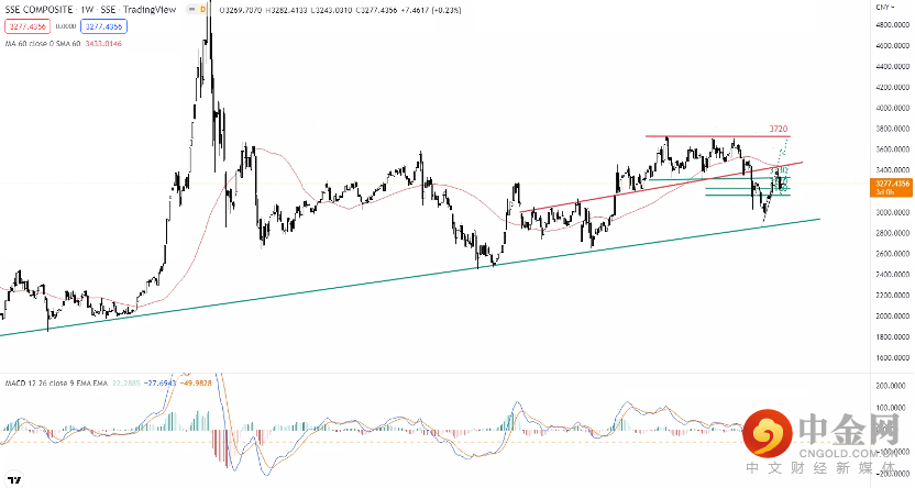 此外,周线级别MACD指标显示出明确的黄金交叉信号,表明第3季度可能出现中期反弹。
