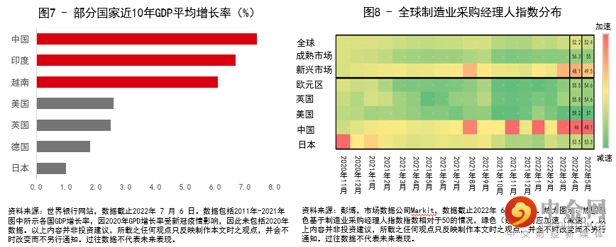 将资产分散投资于多个地区的重要性和必要性毋庸赘言,其中的逻辑也相对清晰简单—— 从把握投资机遇的角度来讲,由于每个国家和地区长期经济发展增长速度差别较大(图7),且可能处于不同的经济周期阶段中(通过图8中的制造业PMI指数可以观察到不同市场的经济处于扩张或收缩的不同阶段),因此可以通过分散投资于不同国家或地区,更全面地把握环球范围内的投资机遇;而从风险控制的角度来说,相比押注单一地区,分散投资于多个地区可有效降低局部地缘政治冲突以及个别国家重大金融事件(图9)所带来的资产价格波动。