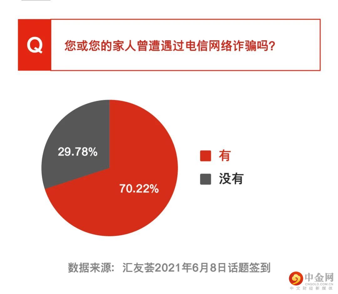 根据调查,有70.22%的受调查者透露自己或家人曾遭遇过电信网络诈骗,有29.78%的受调查者则表示没有遇到过。