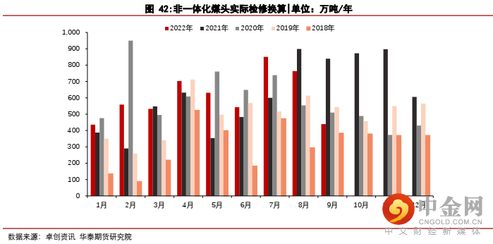 7月非一体化煤头检修放量,8月检修量级亦尚可,但检修峰值暂过