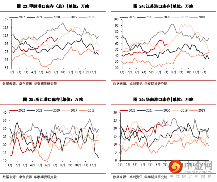 港口MTO装置变动情况。天津渤化7.27传出短停检修消息,但7.28再度传出低负荷运行消息。而南京诚志MTO一期及二期逐步恢复。港口需求暂持稳。
