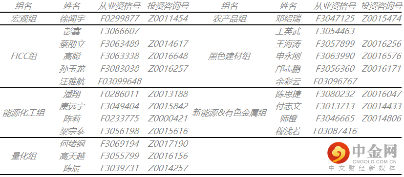 注:上图所有品种观点为主力合约的短期观点,具体以官网报告为准