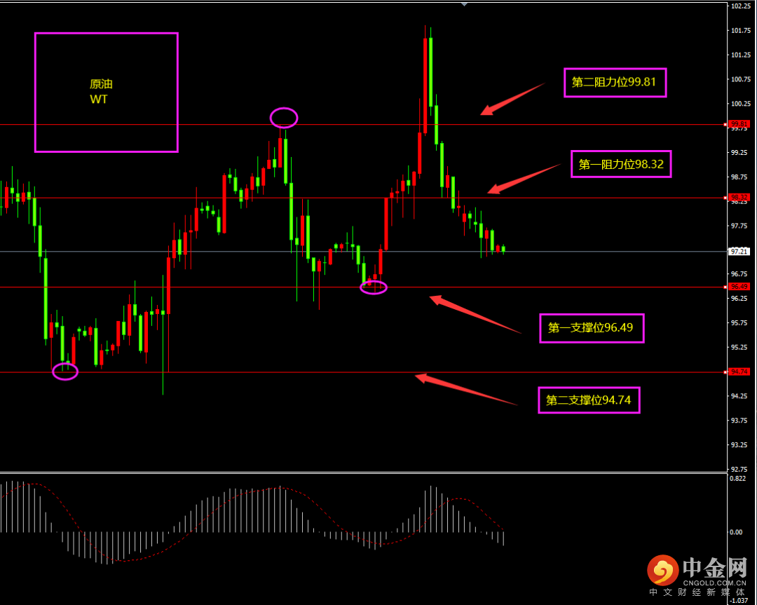 第一、二阻力位附近轻仓看空,第一支撑位附近轻仓看多。