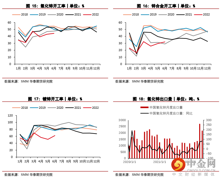 从初级加工端的情况来看,7月间锌下游消费表现略显疲软,考虑到8月仍处于行业消费小淡季叠加终端需求恢复较缓,预计加工端开工维持低位。