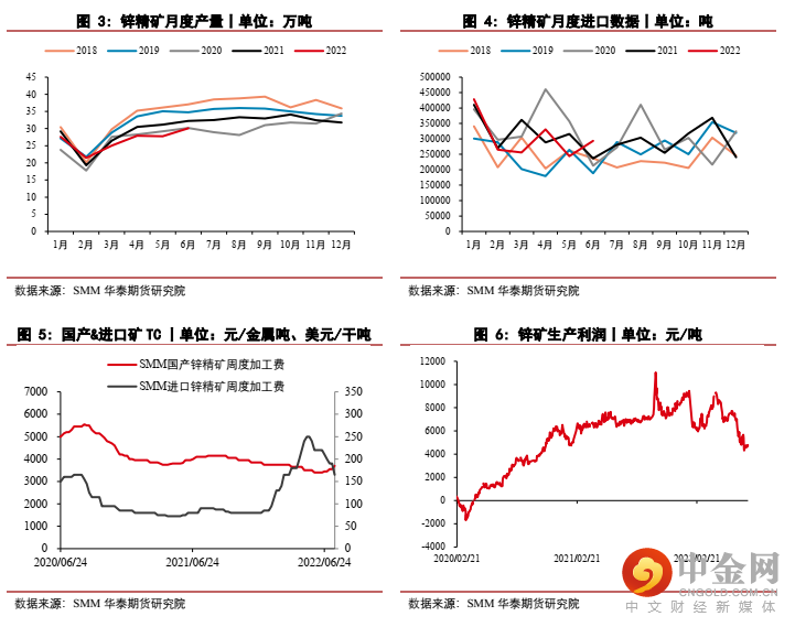 进口方面,据海关数据,2022年6月,国内锌精矿进口量293328.78吨,环比增加 25.58%,主要来自澳大利亚和秘鲁。