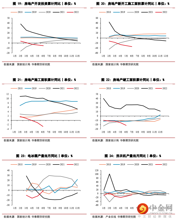 家用电器方面,2022年6月冰箱总销量657.5万台,同比下降8.1%;家用空调销售1421.58万台,同比下降13.86%;洗衣机总销量515 万台,同比下降5.8%。家用电器方面预计短期很难出现“报复性消费”。但随着疫情影响减弱,经济秩序恢复正常,叠加消费刺激政策,后续有望实现一定程度的消费复苏。
