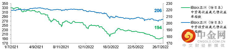 iBoxx亚洲(除日本)中资美元债收益率指数过往一年的走势