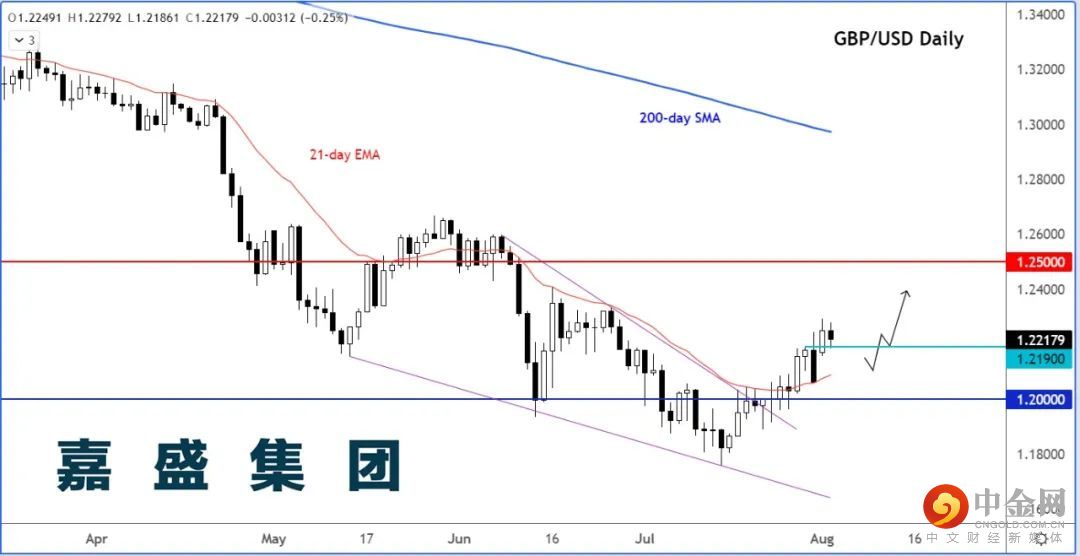 一旦英国央行利率决议公布,市场影响减退,英镑/美元交易者将转而关注定于周五披露的美国非农就业报告。因为焦点一直落在通胀和经济,美国就业报告最近的市场影响力大不如前。但如果就业数据再现颓势,可能深化投资者对全球最大经济体健康状况的担心。如此,英镑/美元可望上攻1.25整数位。