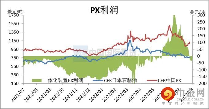 7月PX生产利润出现明显压缩,月内石脑油价格整体下滑,PX价格持续走弱,月底附近随着市场供应的缩减出现一定回升态势,但整体走弱幅度明显,石脑油-PX价差月内整体较往期有一定压缩。