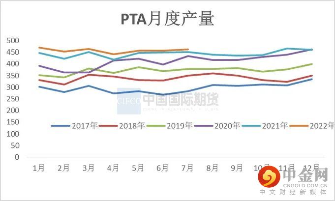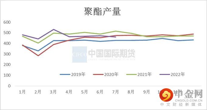 预计8月PTA产量482万吨,8月聚酯开工负荷将有所回升,对PTA消费量将上升。