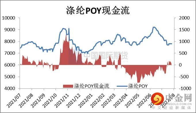 7月聚酯盈利能力提升,现金流利润提升明显,POY常规产品从6月底亏损150元/吨提升至盈利170元/吨,FDY从6月底亏损100元/吨提升至盈利200元/吨。