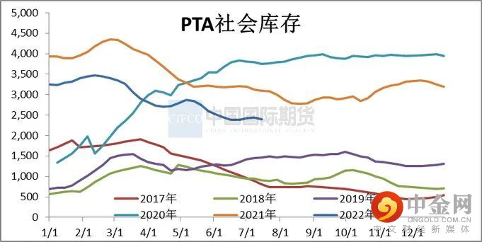 随着传统消费淡季结束,终端织机开机率将回升,利于聚酯成品去库存,预估8-10月聚酯产量将持续增加,8月PTA库存略出现累积。