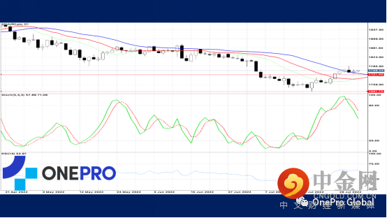 原油的日线技术线型中,长线Alligator呈现死亡交叉,表示长线原油的卖压较强,短线KD指标走入低档钝化区域,长短线行情都偏空,尤其短线的KD属于强力卖空趋势,原油短期不建议逆势而为。