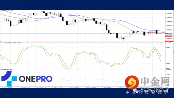 欧元区的日线技术线型中,长线的Alligator呈现纠结的状况,显示长线的欧元价格已经处于买卖之间的角力状况,短线的KD却是从高档钝化区脱离变成死亡交叉,表示短线的上涨受到阻力,短期要观察下方支撑是否跌破,否则容易造成短期拉回。