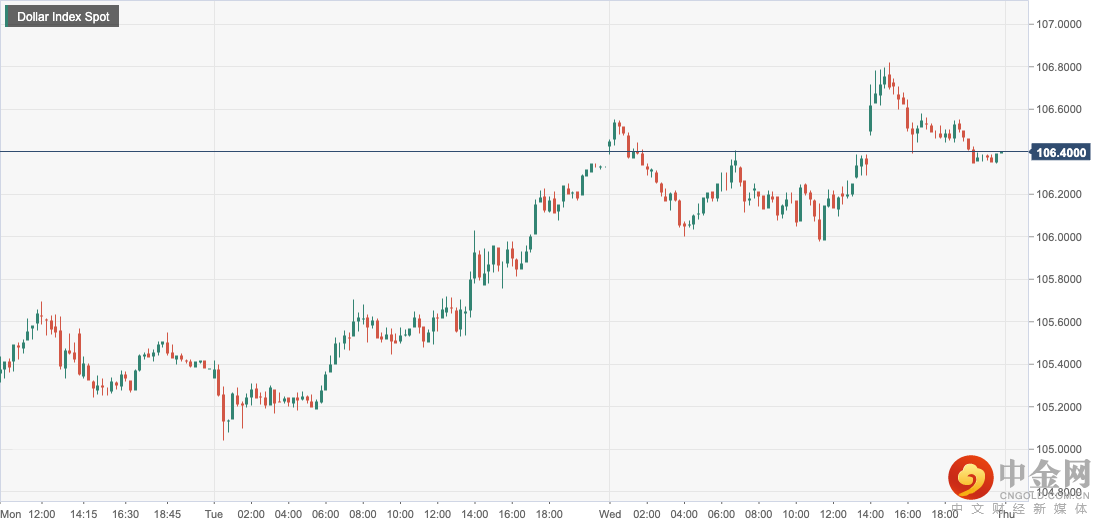 美元指数周三盘中大幅冲高后,今日开盘涨至106.40附近,因美国服务业数据整体利好,使得美元上行支撑提振。