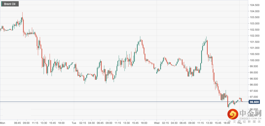 布伦特原油周三收盘大幅回落后,今日开盘跌至96.60附近,因OPEC+批准9月小幅增产,伴随油库存增加,导致油价下行震荡疲软。