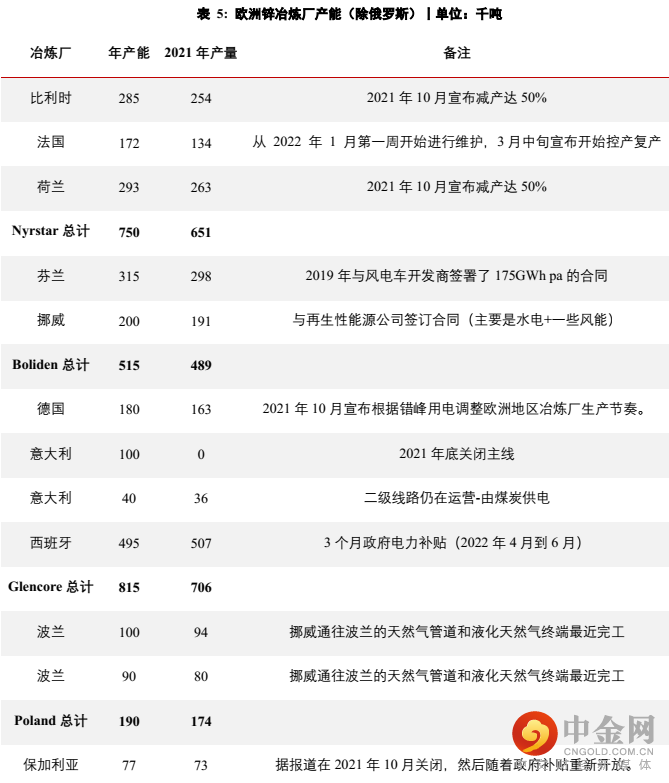 自去年四季度以来,受高成本电价影响,欧洲多家锌冶炼厂连续宣布错峰生产或减停产。加之今年一季度俄乌冲突爆发,欧洲锌冶炼厂的电力成本维持高位,锌冶炼厂基本维持控产生产。从WSBS的数据来估算,欧洲锌实际减产产能或在25万吨左右。