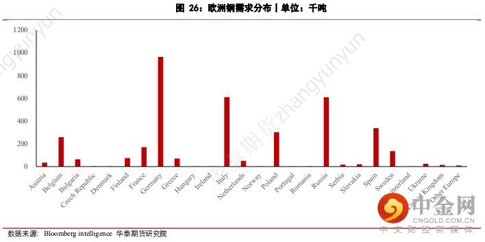 从欧洲能源问题对于铜品种供需的影响来看,欧洲地区诸如德国以及波兰等受到能源问题相对较为严重的国家占欧洲总冶炼产能的占比约为45%(70.8万吨),但由于在铜的冶炼成本中电力的占比相较于铝以及锌品种相对较小,加之部分冶炼厂已经签订了天然气的长协供应,因此对于冶炼供应的影响或许并不十分显著,反倒是由于欧洲地区如德国、法国、意大利等重要的工业国家在铜终端相关板块多有涉及,而终端企业与上游相比又相对分散,故倘若能源紧俏进而导致能源以及电力价格的走高,对于铜品种需求端的影响或将更为显著。