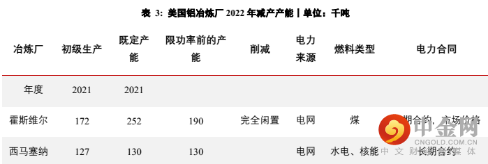 因此,如果能源价格继续推高,美国和欧洲加起来,可能将看到约90万吨的炼铝产能面临削减风险,占中国以外供应的约3%。