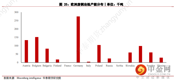 在废铜方面,欧洲产能占比同样在11%左右(101.37万吨),但产能分布相较于精铜冶炼企业更为分散,并且北欧的占比相对较高,这也在一定程度上分散了能源紧俏对于废铜冶炼产量的影响。