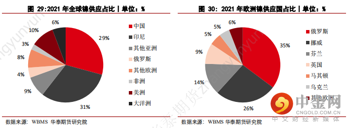 镍:全球镍供需集中在亚洲地区,欧洲占比相对较小影响有限,不过欧洲能源危机对消费影响稍大于供应,对镍价影响略偏空。