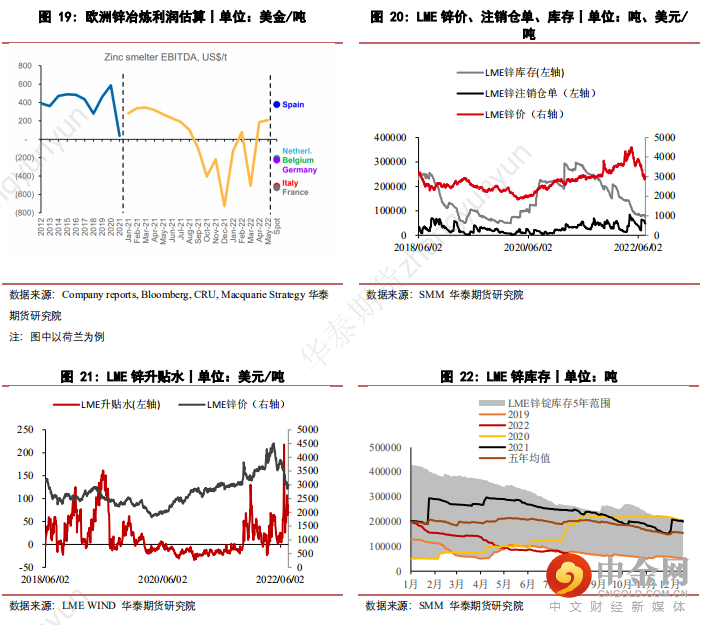 考虑到夏季用电高峰以及下一个取暖季的到来,预计能源供应不确定性持续存在,需求或将再度走高,届时供需矛盾激化或带动欧洲能源维持高波动,锌冶炼厂利润或再度承压,减产风险增大。后续需持续关注欧洲能源价格走势以及上一取暖季内频繁减产的Glencore 和 Nyrstar 是否会再度减停产。