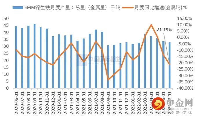 图2-2:镍铁月度产量同比下降