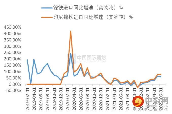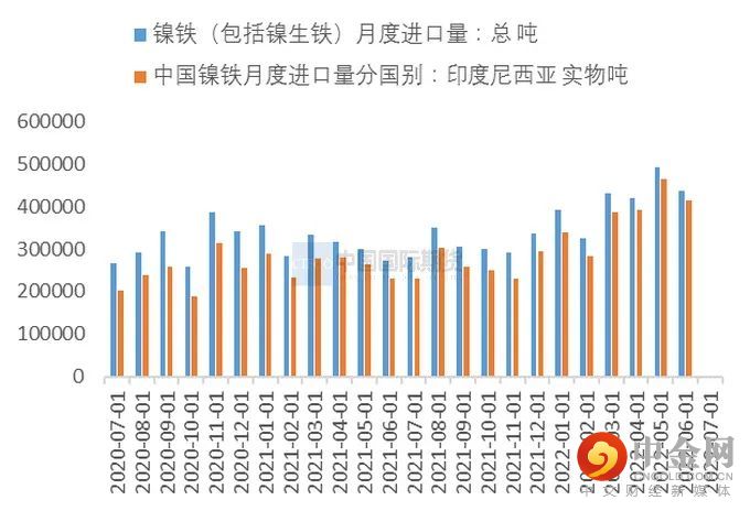 5月以来菲律宾的镍矿进口量已经同比持续下降,作为产量旺季的6月,进口量也不足400万吨,其主要原因仍是镍铁6月、7月减产而导致的需求下降。随着镍矿价格不断下移,预计7月的进口量会继续增幅下降。