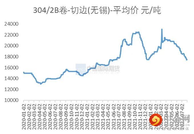 SMM数据显示,截止7月31日,无锡+佛山不锈钢库存为68.5万吨,相较于6月底有所增加。全国冷轧300系(无锡+佛山)库存合计44.71万吨,库存总体呈现上升趋势,不锈钢库存月度环比上升0.44%。从MYSTEEL周度数据看,300系在7月底出现了周环比下降,佛山和无锡都有去库状态。但目前总体库存仍在高位,关注8月减产的情况下,如果持续性去库,终端需求也有所恢复,或带来整体产业链价格企稳。