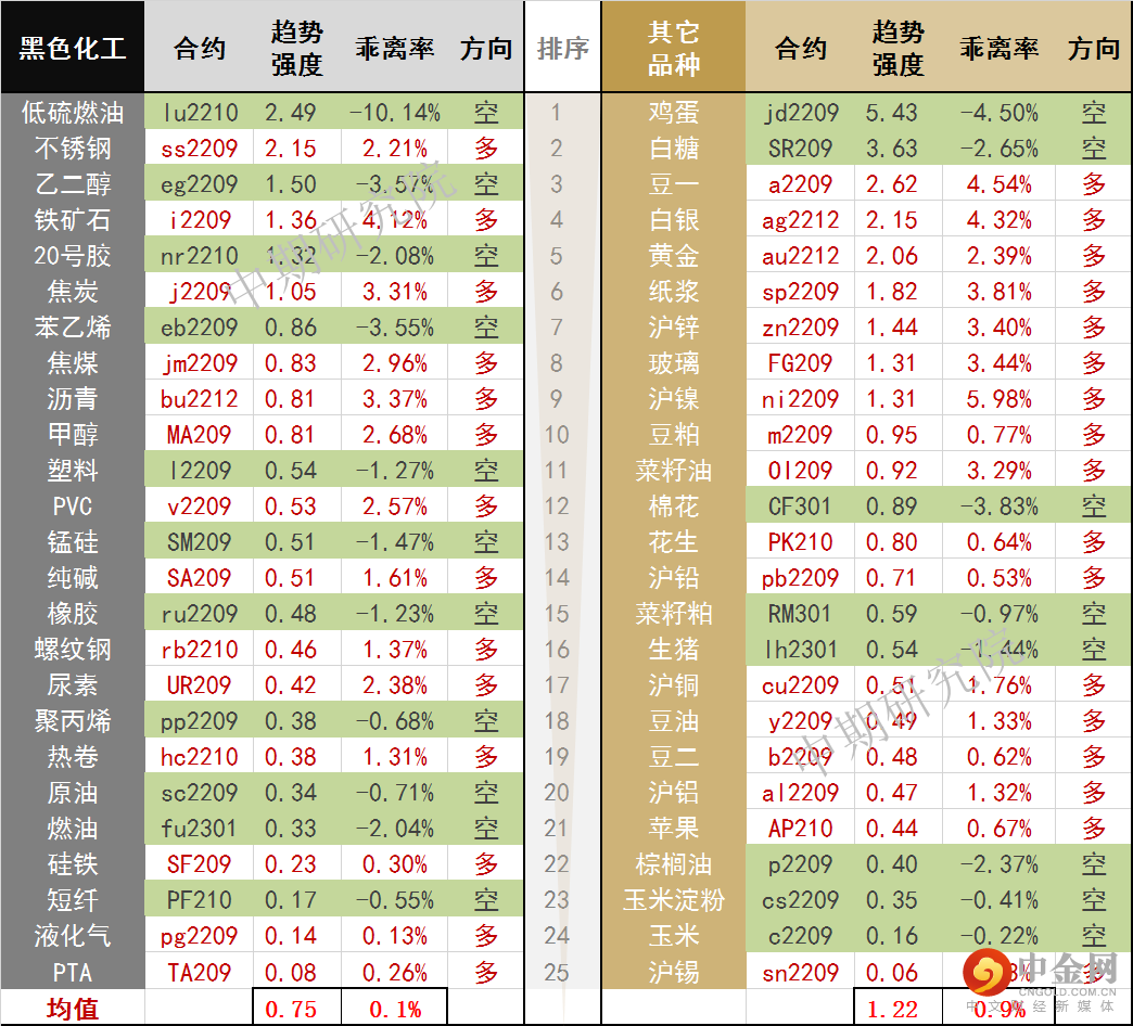 中期商品趋势榜 | 鸡蛋空头动能增强(0804)